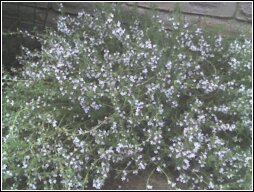 Peeking out on the other side of Crazy Girl is my winter savory. An herb in bloom.