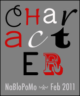 I just looked up character in my Merriam Webster’s Collegiate Dictionary (10th edition), because I thought I’d cheat fudge a little in this the first post and define the word.