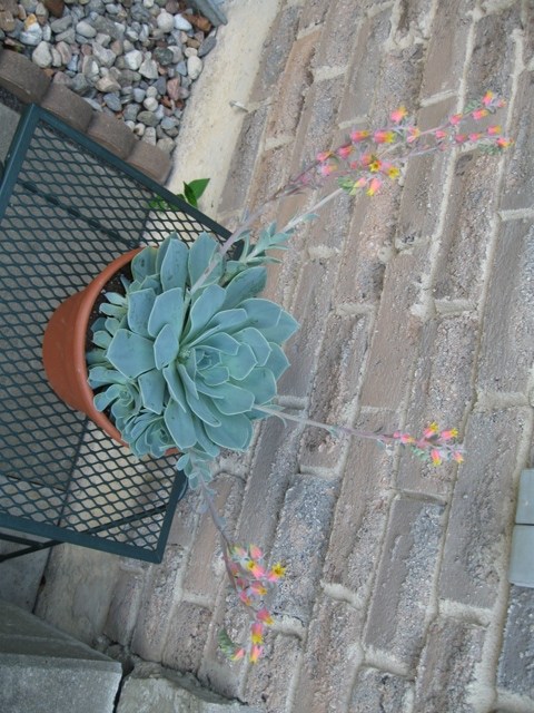 I was out this morning at the produce market before it became 86-feels-like-88-Fahren and couldn’t walk away without getting this for the front garden. I have a deep red hen & chicks out there that could use some company.