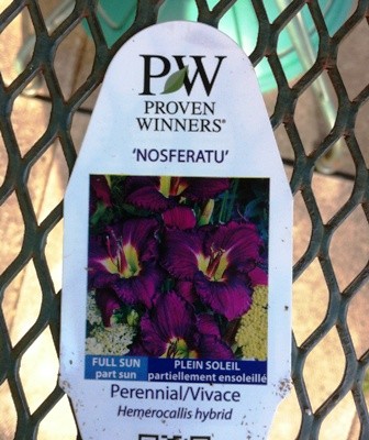 Mercy. This was gorgeous in the flesh petals. 6 inch, shimmering, dark purple blooms with a ruffle. It grows to 26 inches in height and is a mid-season bloomer. I took these blooming stick pictures when I got home, because we were at Gardens Plus at high noon, and it was really bright. Okay. The real reason is that I was too busy oohing here and aahing there to even think of taking a photo. I get tunnel vision sometimes.