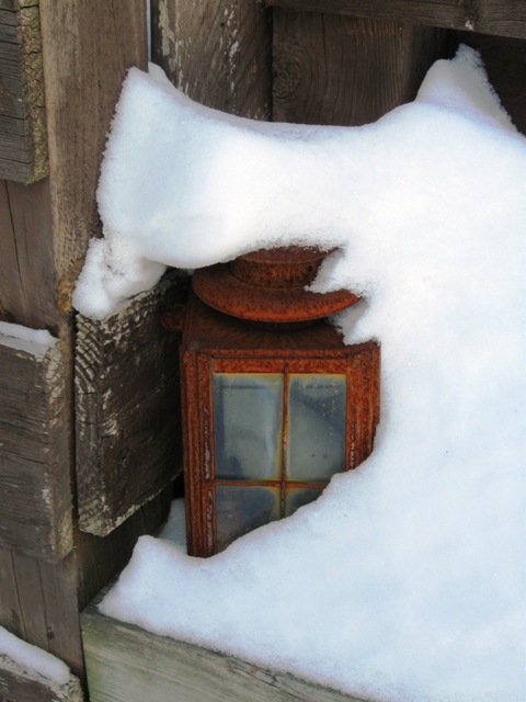 Oh, the rust! The glass! A little metal lantern that has graced our back garden for ages. One year, I forgot to bring it in for the winter and it rusted. I set it on the retaining wall, where it resides evermore.