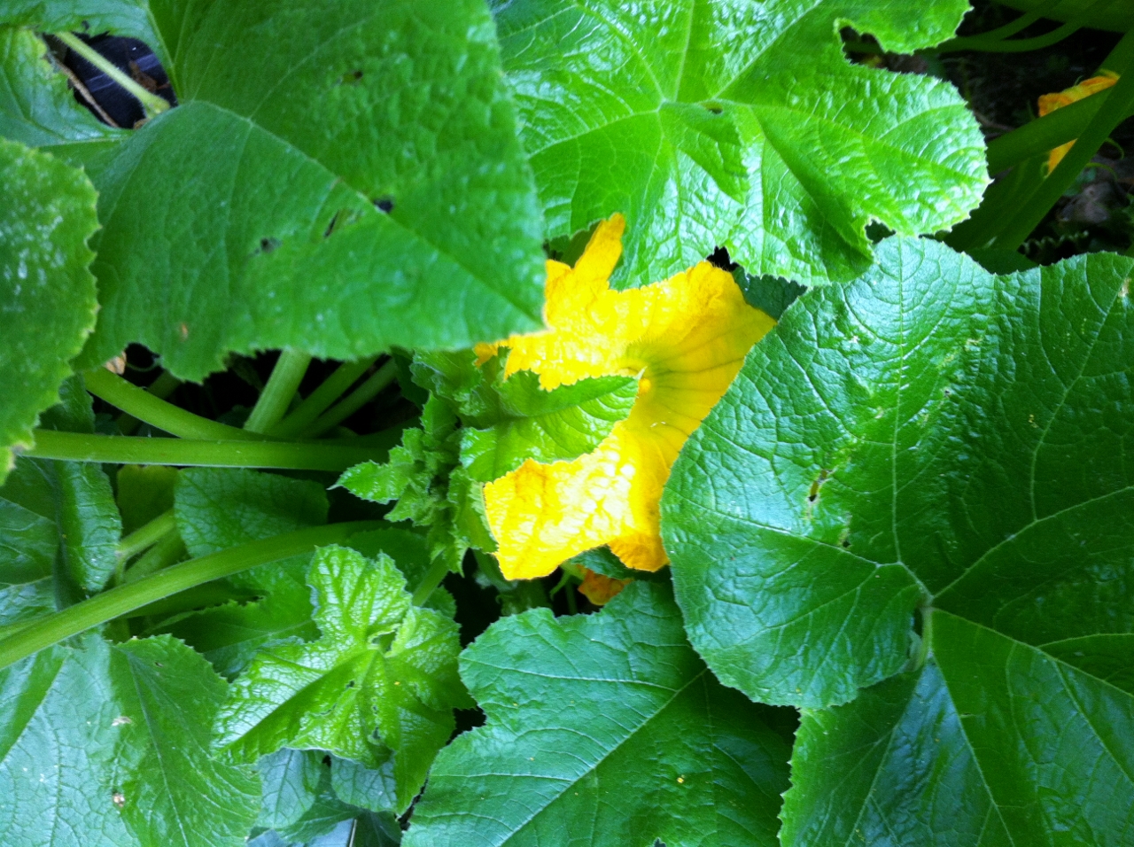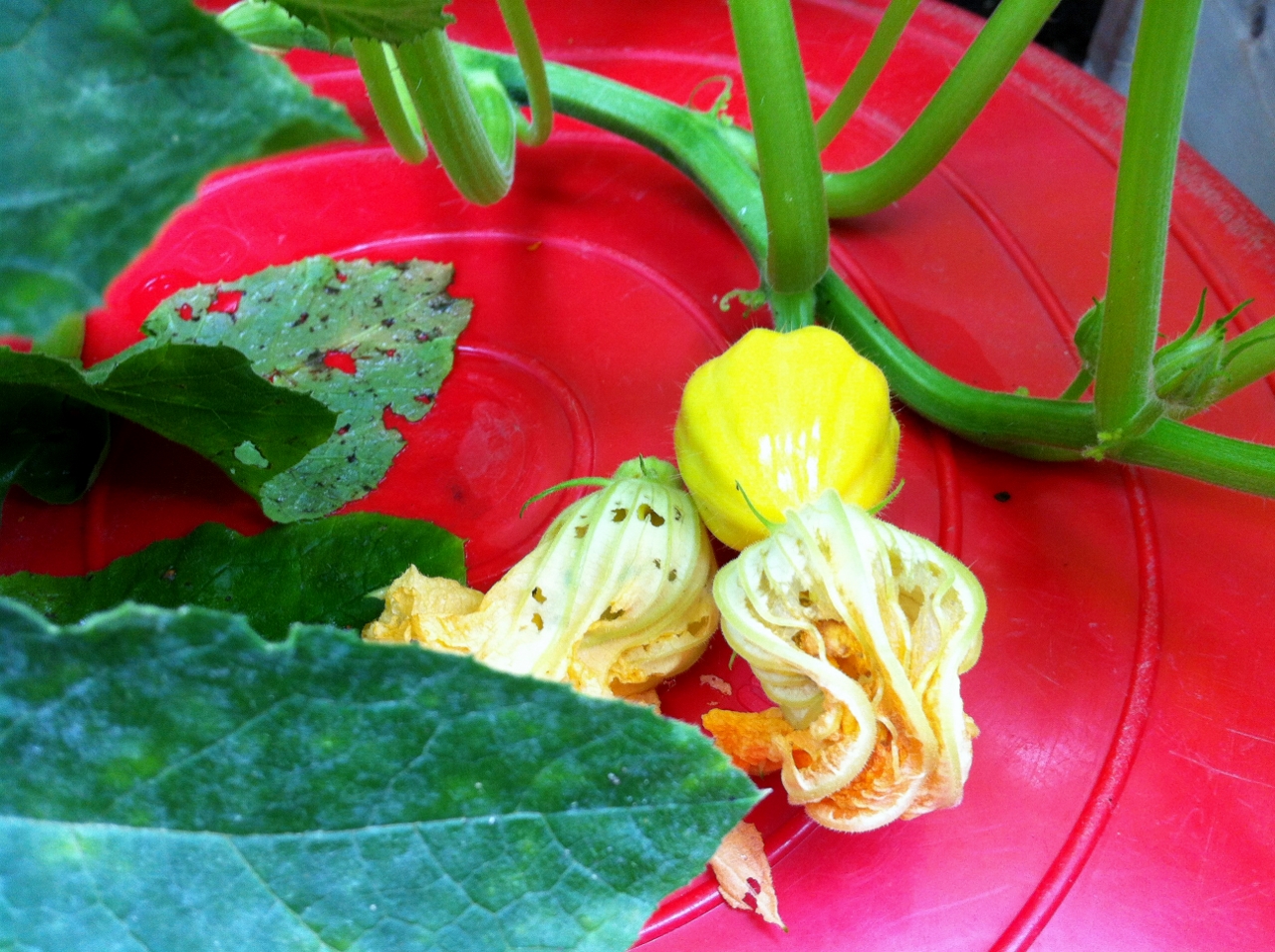 Mystery Squash 2 ~ Aw. The baby. She’s nesting on an upside down garden basket. And heading west. Go West, Young Squash, go West!