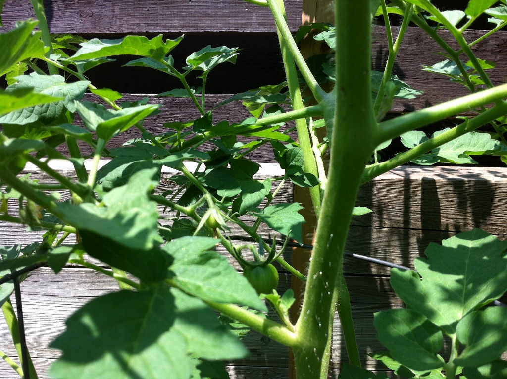 This is the Chadwick’s Cherry Tomato. It’s from seed. Seed which I got from Edible Antiques. However, after it grew big enough, I planted it right in the ground. This is a high volume, disease tolerant, mold resistant, hardy plant. It sometimes goes by the name of Camp Joy.