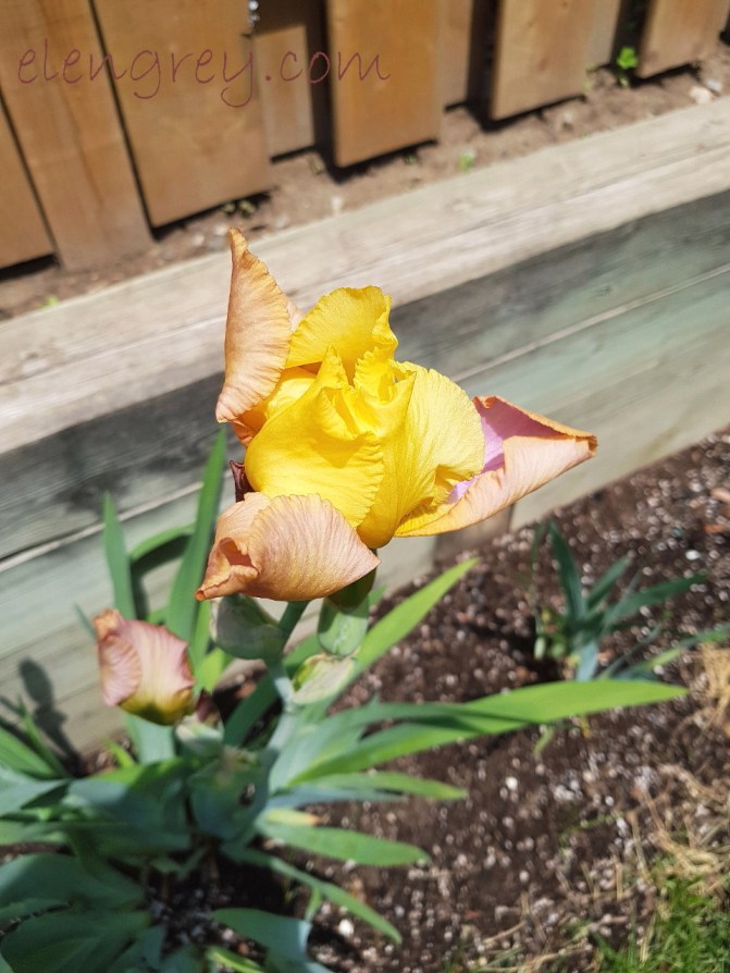 I planted this Iris last spring. The first in my perennial garden. She napped and grazed the first year. Swung in the hammock and read her way through Donna Grant’s Dragon Kings Series. Showered regularly.