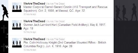 Remembering the names of Canadian Forces members killed in the line of duty, every hour at 11 minutes past the hour. Presented by the Ottawa Citizen. (On Twitter)