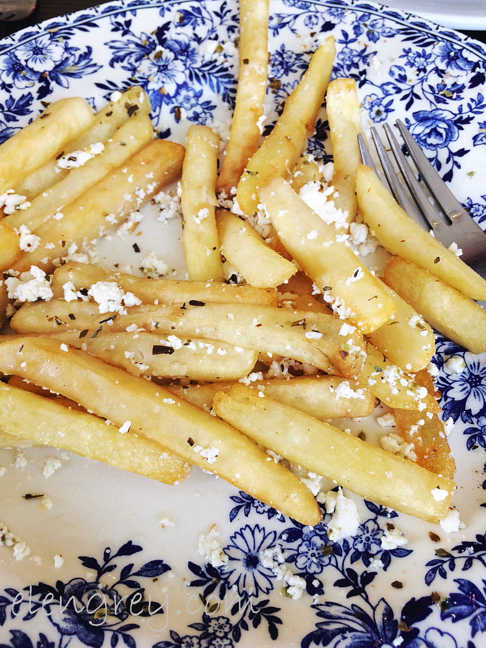 First, just look at that plate. Who doesn’t want to eat a pile of fresh, hot Greek fries on a beautiful blue plate? That plate made me smile. Those Greek fries made me moan. Can I say moan? Because I was totally blissed-out on those fries. That was a shared plate with G-Man. That’s my story, and I’m sticking to it.